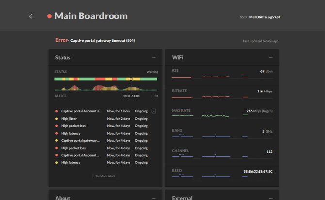 Experience, Wi-Fi, Network, Internal, External 각각의 신호를 통해 각 지역의